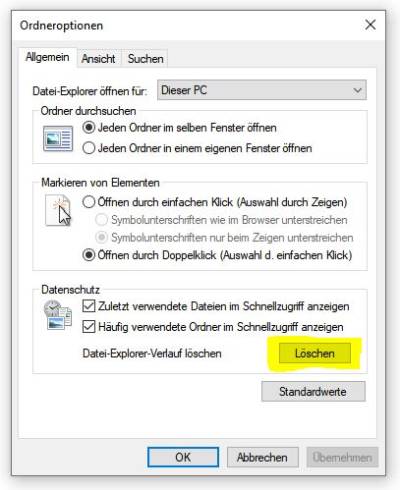 Schnellzugriff im Explorer deaktivieren